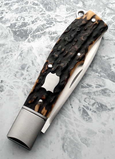 Type : 2 blade lock back and slip joint folder Blade : RWL34, ATS34 Bolster/Handle : Stainless steel / stag Blade Length : 3" (76mm), 2 11/16"(68mm) Closed Length : 3 13/16" (97mm)