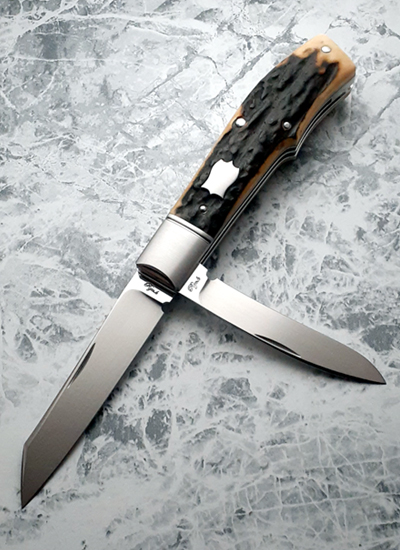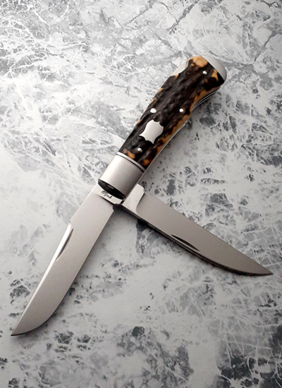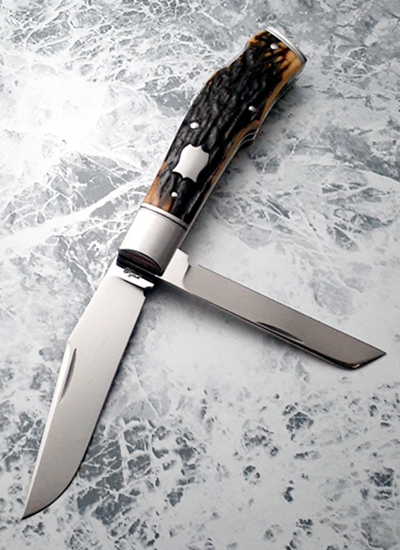 Type : 2 blade lock back & slip joint folder Blade : RWL34, ATS34 Bolster/Handle : Stainless steel / stag Blade Length : 3" (75mm), 2 1/2"(64mm) Closed Length : 3 13/16" (97mm)